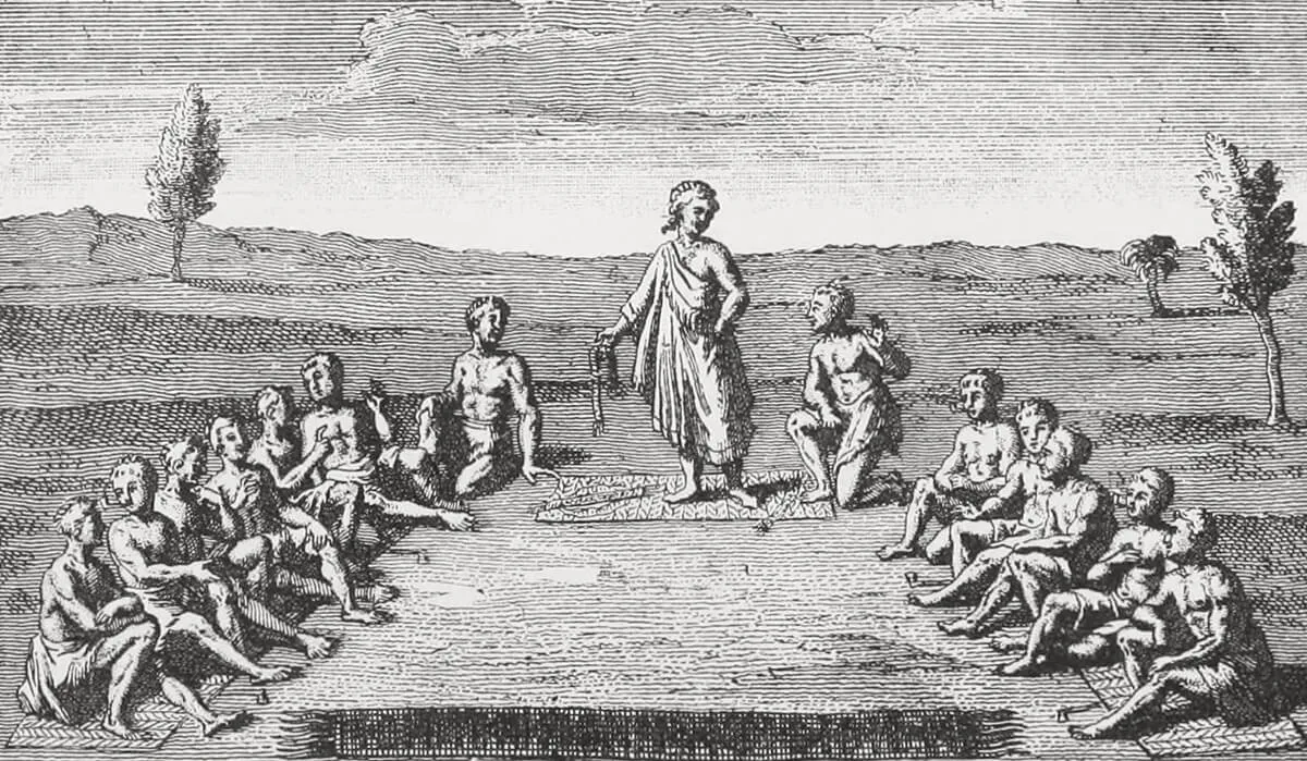 Irokeska Konfederacja Sześciu Narodów reprezentowała unikalny model federacyjnej organizacji społecznej, oparty na matrilinearnej strukturze rodowej i zasadzie konsensusu w podejmowaniu decyzji. Fundamentalnym elementem było zrównoważenie władzy między kobietami-matronami a mężczyznami-wodzami.